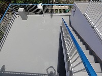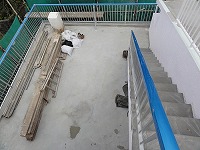 コンクリート手摺り及び土のう撤去後スラブ補修調整