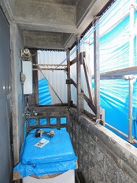 水タンク撤去及び下地補修作業中