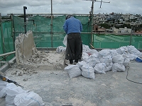 コンクリートタンクのひび割れや爆裂が進行していた為、ステンレスタンクへ取り替え後、ウレタン防水仕上げへ。